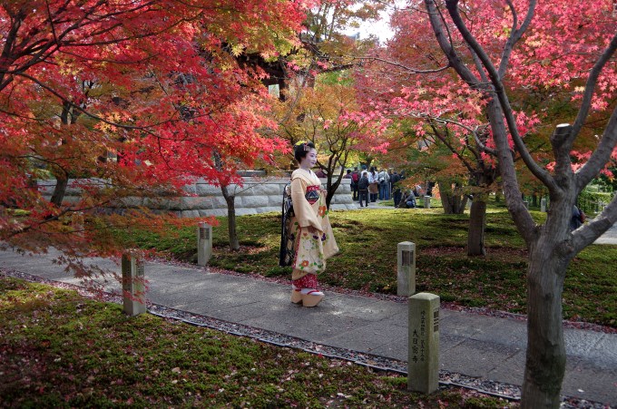 Kyoto est réputée pour être LA ville où l’on peut voir de vraies Geisha (ou Geiko) et leurs apprenties, les fameuses Maiko, véritables gardiennes de la tradition et du savoir vivre japonais depuis des siècles. Plus exactement, ce sont des artistes dans l’art de recevoir et de divertir, notamment dans les maison de thé auxquelles elles sont affiliées et dans lesquelles elles dansent, chantent, jouent du koto ou du shamisen, font la conversation et bien sûr servent le thé.
