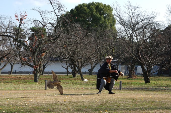 Ce dimanche au château Nijo (二条城) on pouvait venir admirer une démonstration de fauconnerie, que l’on appelle ici Yôjutsu (鷹術) ou Takagari (鷹狩り), soit l’art de dresser les oiseaux de proie.