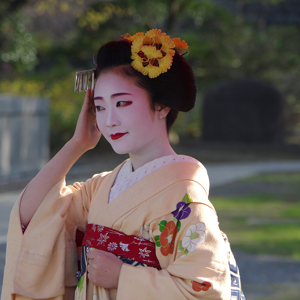 Maiko Shôko, posant au temple Chisaku-in. 舞妓彰子さん、智積院。 https://somosomo.co/2015/11/29/maiko-geiko-momiji/ Reply