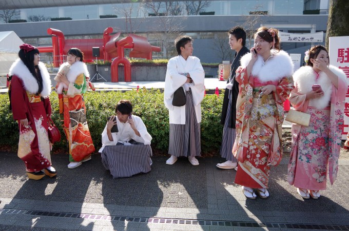 Mais pour un jour comme aujourd’hui, le Furisode est tout indiqué ! Car le but du Seijin Shiki c’est de faire en sorte que cette journée / rituel de passage soit marquée de manière un peu solennelle et rien de tel qu’une toilette d’apparat pour marquer le coup !