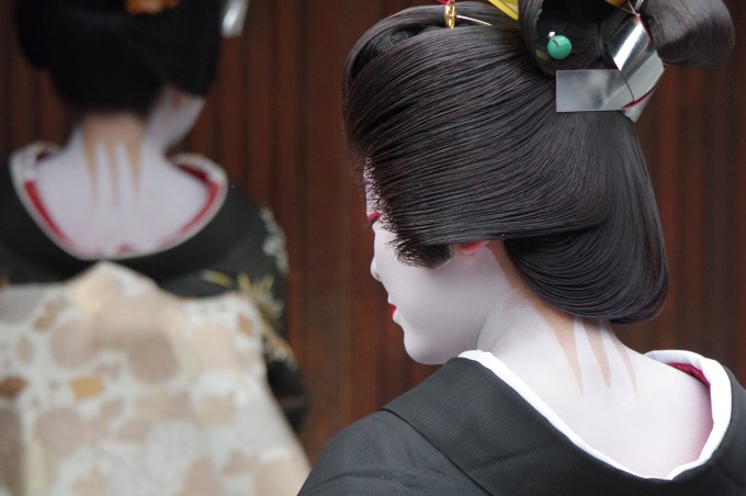 Elles vont donc par petit groupe et à tour de rôle rendre une brève visite à tous leurs bienfaiteurs du quartier qui les accueillent tout au long de l’année pour leurs cours et bien sûr les fameux banquets Ozashiki (お座敷).